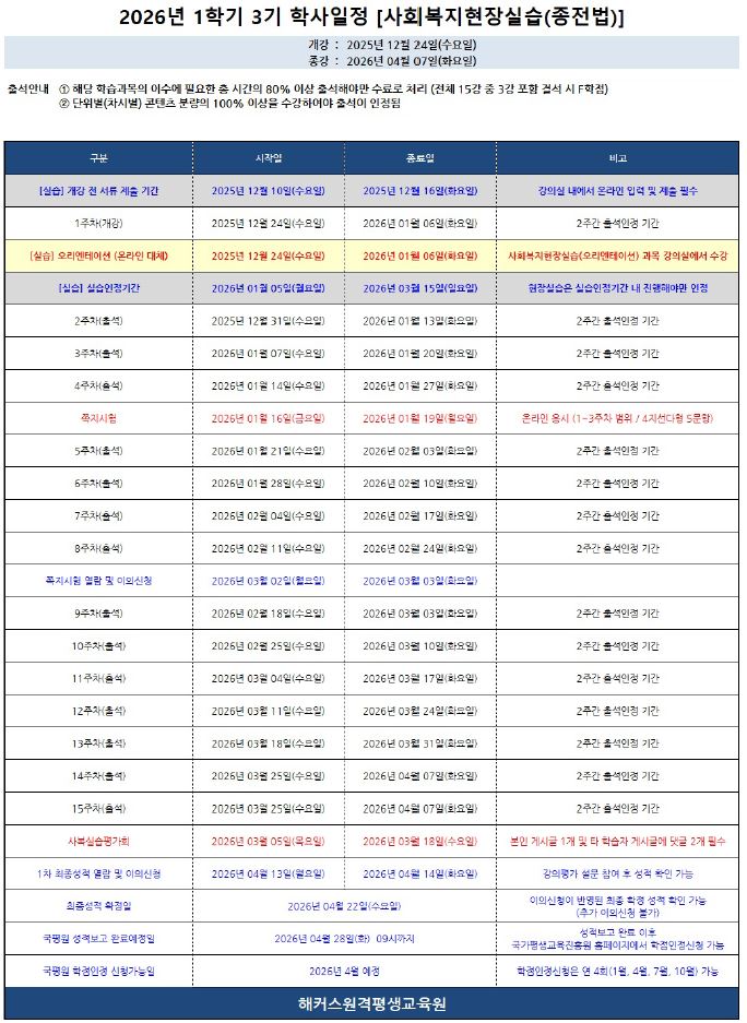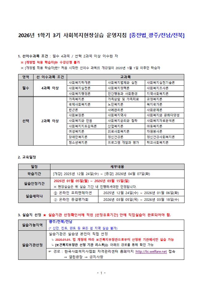 제목 2026년 1학기 3기 (12월 24일 개강반) 사복실습 (종전법_광주/전남/전북) 운영지침