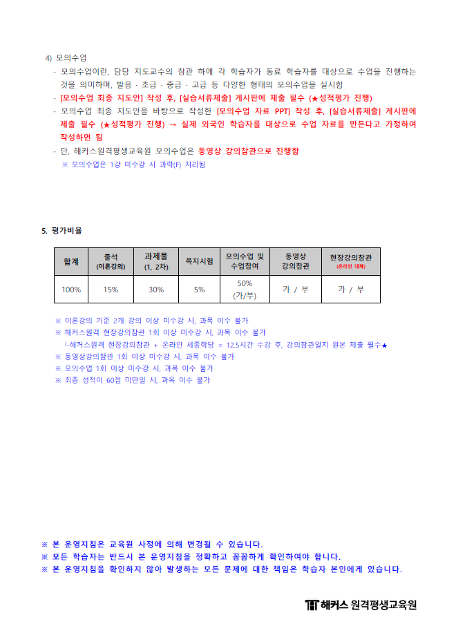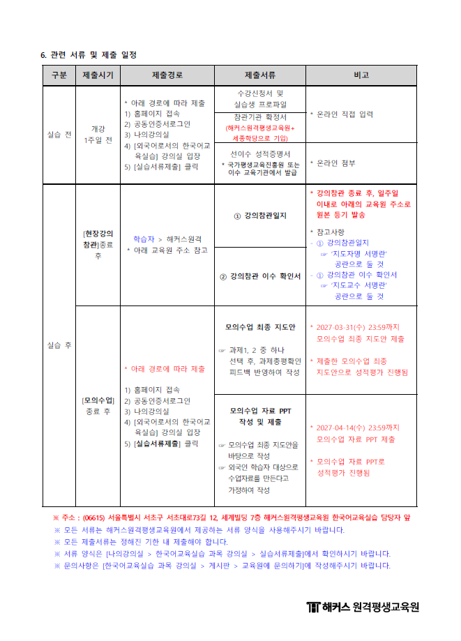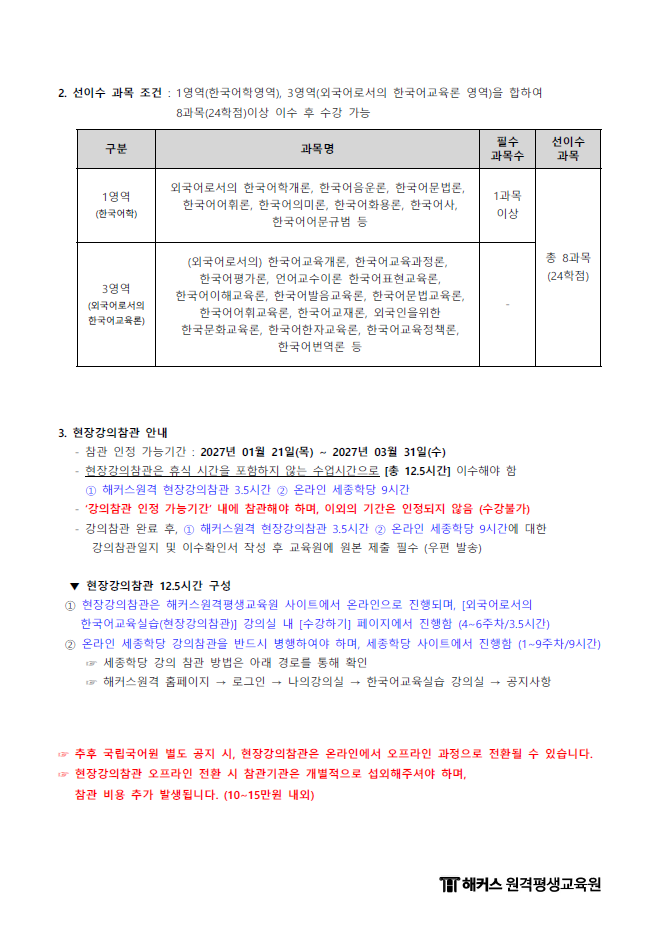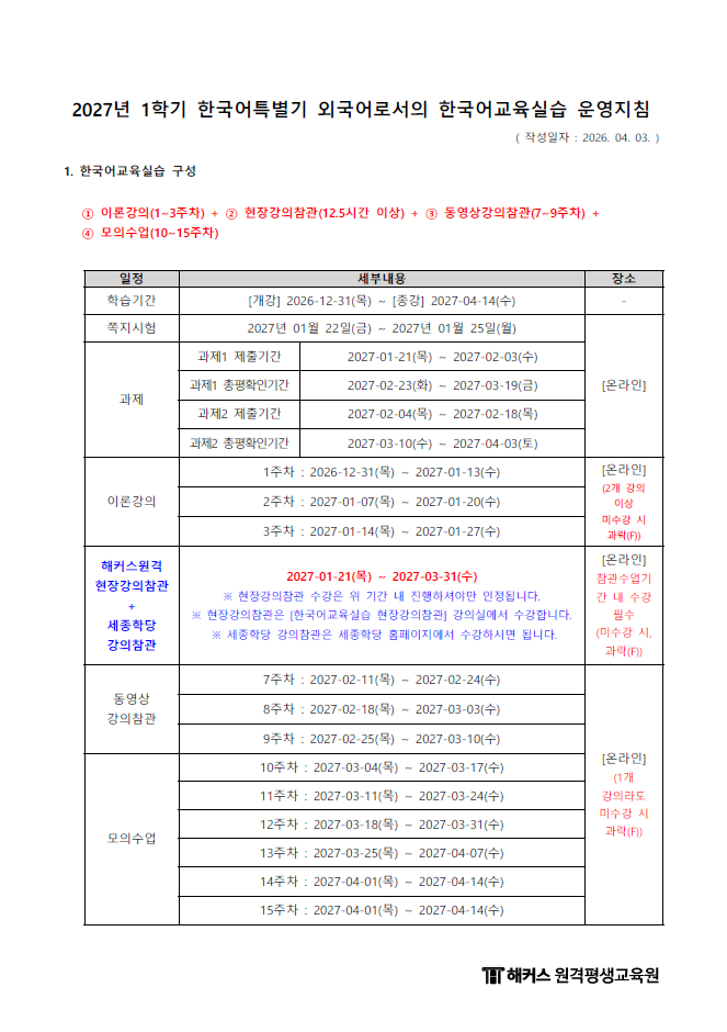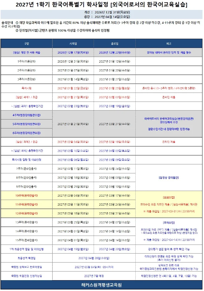 제목 2027년 1학기 한국어특별기 (12월 31일 개강반) 운영지침